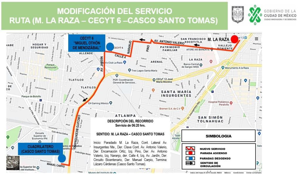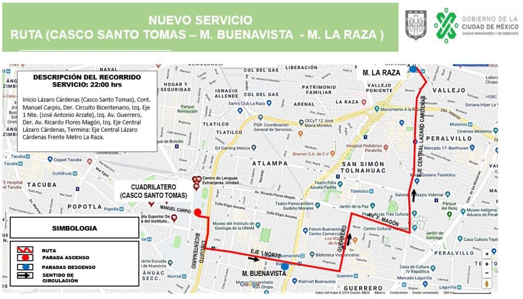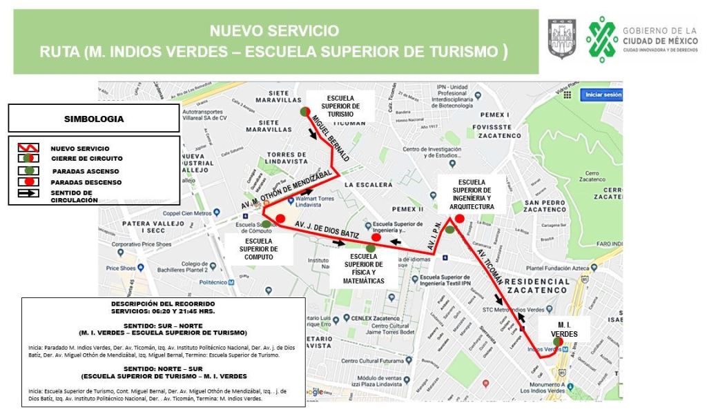 Las tres rutas seguras que abarca son: la Casco de Santo Tomás – Buenavista-La Raza , La Raza- Cecyt 6-Casco de Santo Tomás y Ruta Indios Verdes – Escuela Superior de Turismo.