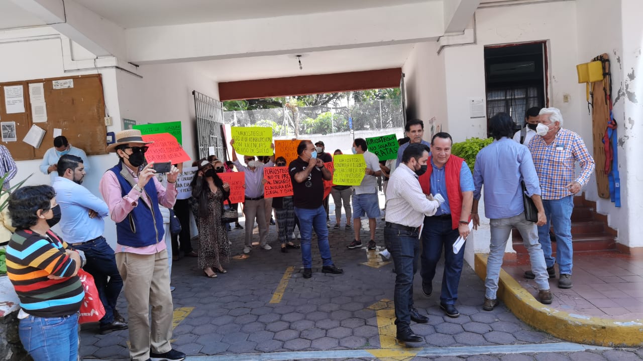 Este martes habitantes de las colonias Delicias y Vista Hermosa acudieron al Ayuntamiento de Cuernavaca para exigir la clausura de la construcción de la Universidad "Humanitas" en esta zona.
