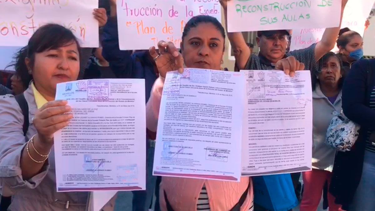 Integrantes del Comité de Padres de Familia de la escuela primaria “Plan de Ayala” del Centro de Tlaquiltenango, se manifestaron en las instalaciones del Instituto de la Educación Básica del Estado de Morelos (IEBEM), para exigir la reconstrucción total del plantel, después de que se vio afectado por el sismo del 19S.