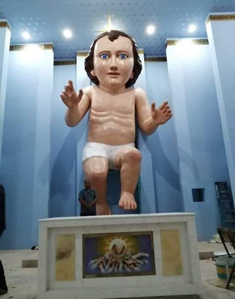 Hace unos días, una figura gigante de un Niño Dios, fue instalada en la parroquia de Zóquite del Estado de Zacatecas, esta imagen ha causado revuelo en las redes sociales debido a la forma peculiar con la que fue hecha.