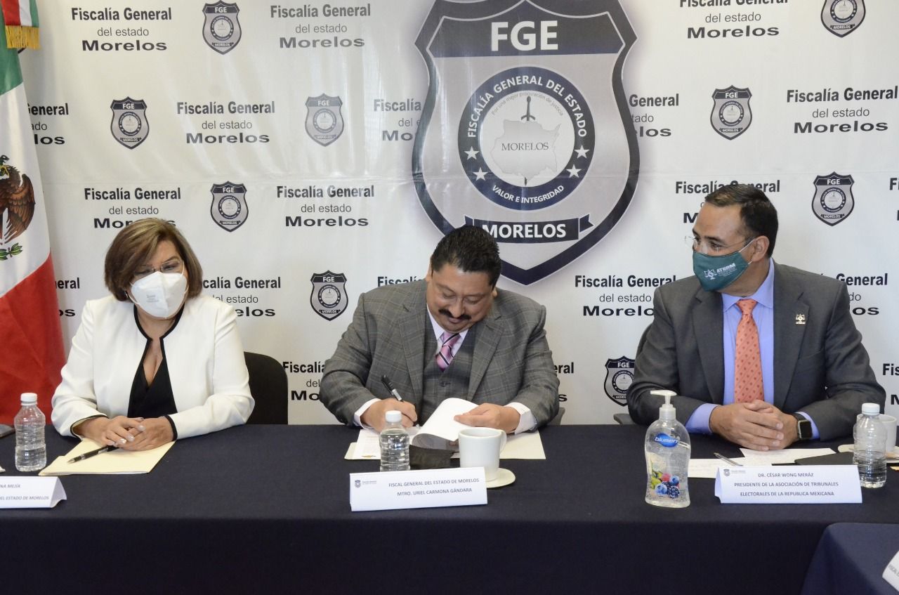 La Fiscalía General del Estado (FGE) de Morelos, con la Asociación de Tribunales Electorales de la República Mexicana y el Tribunal Electoral del Estado de Morelos, firmaron el pacto de colaboración para la prevención de los delitos electorales rumbo a las siguientes elecciones.