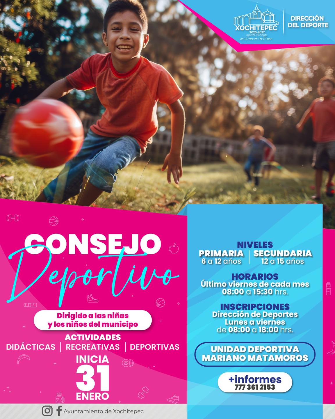El Gobierno Municipal de Xochitepec, encabezado por el alcalde Roberto “Chalo” Flores, invita a todas las niñas y niños del municipio a formar parte del Consejo Deportivo de Xochitepec.