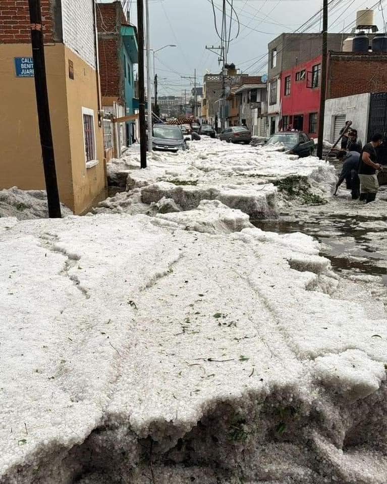 Las calles de Puebla amanecieron cubiertas de hielo tras una fuerte granizada, dejando derrumbes de árboles y postes, así como inundaciones en varios puntos de la capital del Estado. Los cortes de energía eléctrica afectaron a diversas zonas, aunque no se han reportado personas heridas.