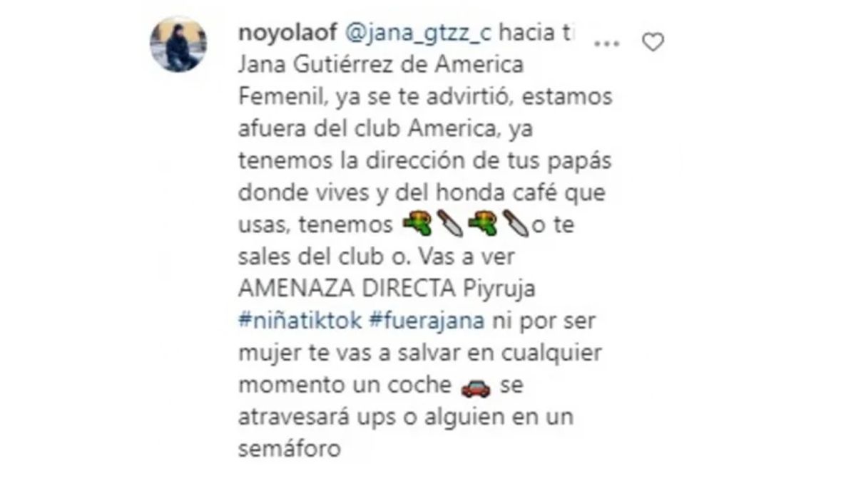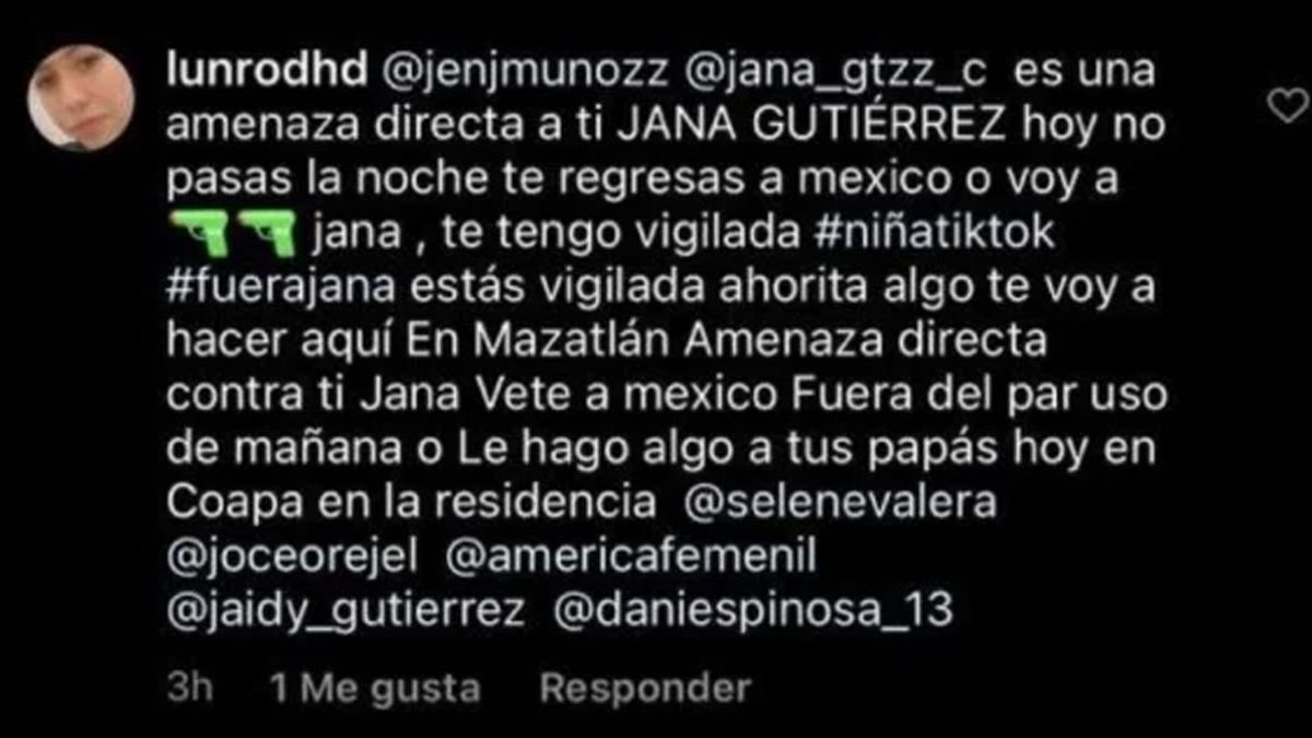 En las redes sociales de Jana Gutiérrez quedaron las pruebas de amenazas de muerte que se realizaron en su cuenta de Instagram.