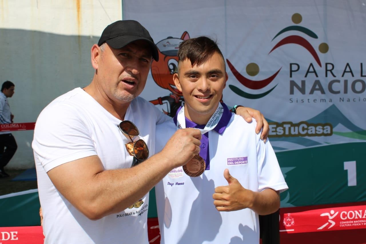 Mientras que Diego Menes Pineda subió al podio al obtener medalla de bronce en la prueba de 100 metros pecho, categoría 19-21, clasificación S21, con un tiempo de 2:01.44 minutos.