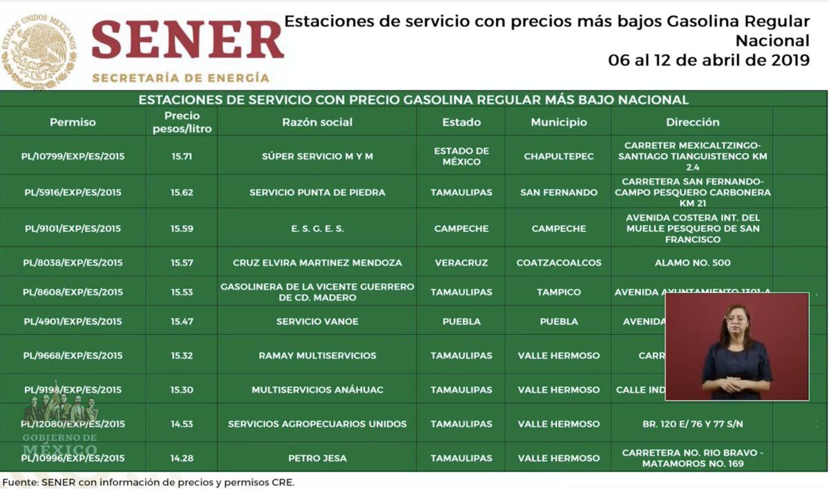 En Tampico, Tamaulipas, la estación de servicio de la Vicente Guerrero, con según un precio de $15.53 pesos, cerró en el año 2018.