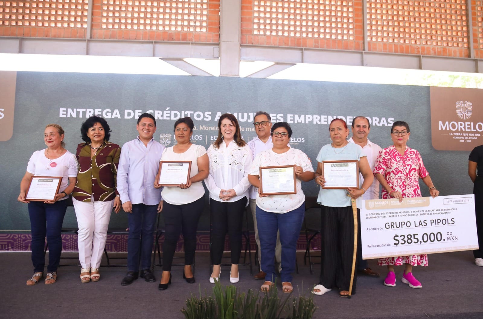 La gobernadora Margarita González Saravia encabezó la entrega de créditos del programa Mujeres Emprendedoras, beneficiando a 87 mujeres con financiamientos grupales e individuales a través del Fondo Morelos.