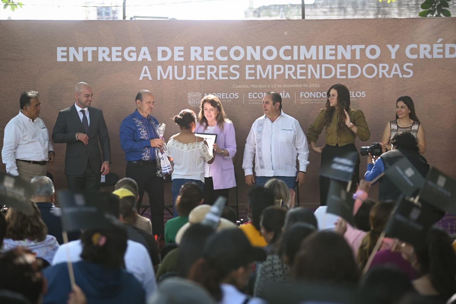 Durante una gira de trabajo en Cuautla, la mandataria entregó 2 millones 930 mil pesos en créditos a 93 mujeres organizadas en 17 grupos solidarios.