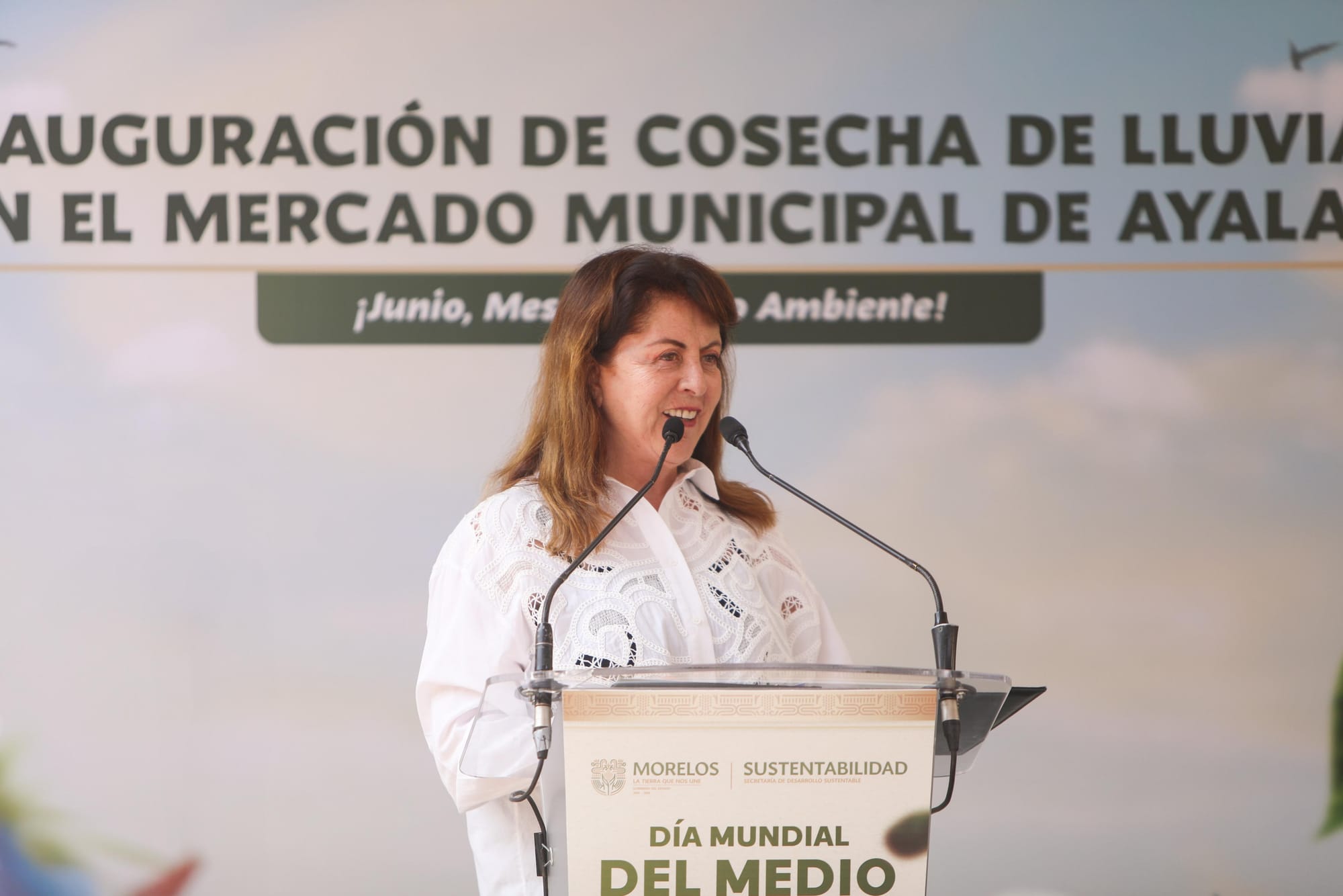 La gobernadora de Morelos, Margarita González Saravia, encabezó este 5 de junio la inauguración de un sistema de captación de agua de lluvia en el mercado municipal “Otilio Edmundo Montaño” de Ayala, reafirmando su compromiso con el medio ambiente y con las comunidades del estado.