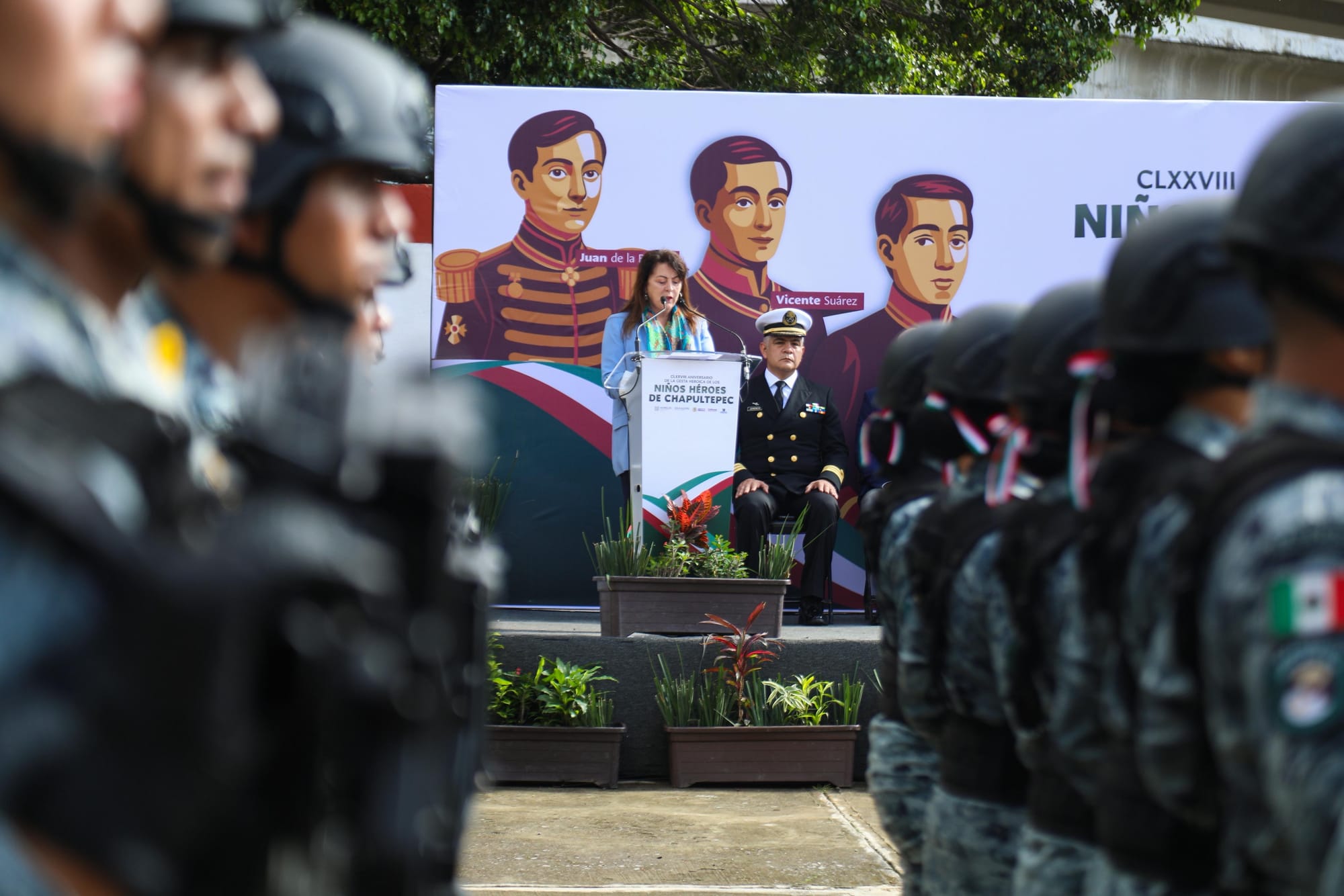 La gobernadora de Morelos, Margarita González Saravia, participó en la ceremonia conmemorativa del CLXXVIII aniversario de la Gesta Heroica de los Niños Héroes de Chapultepec, realizada en las instalaciones de la 24/a Zona Militar. El acto estuvo encabezado por el General de Brigada José Luis Bucio Quiroz y contó con la presencia de autoridades militares, civiles y estudiantes de diversas instituciones educativas.