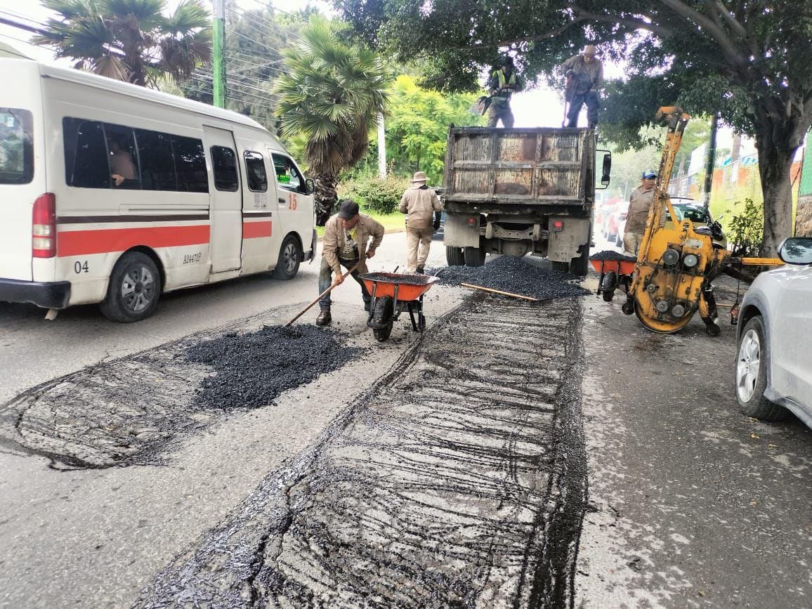 En paralelo, cuadrillas municipales realizaron trabajos de bacheo y renivelación en las vialidades más afectadas por las lluvias, incluyendo avenidas principales como Universidad, Teopanzolco y Defensa Nacional en Chamilpa.