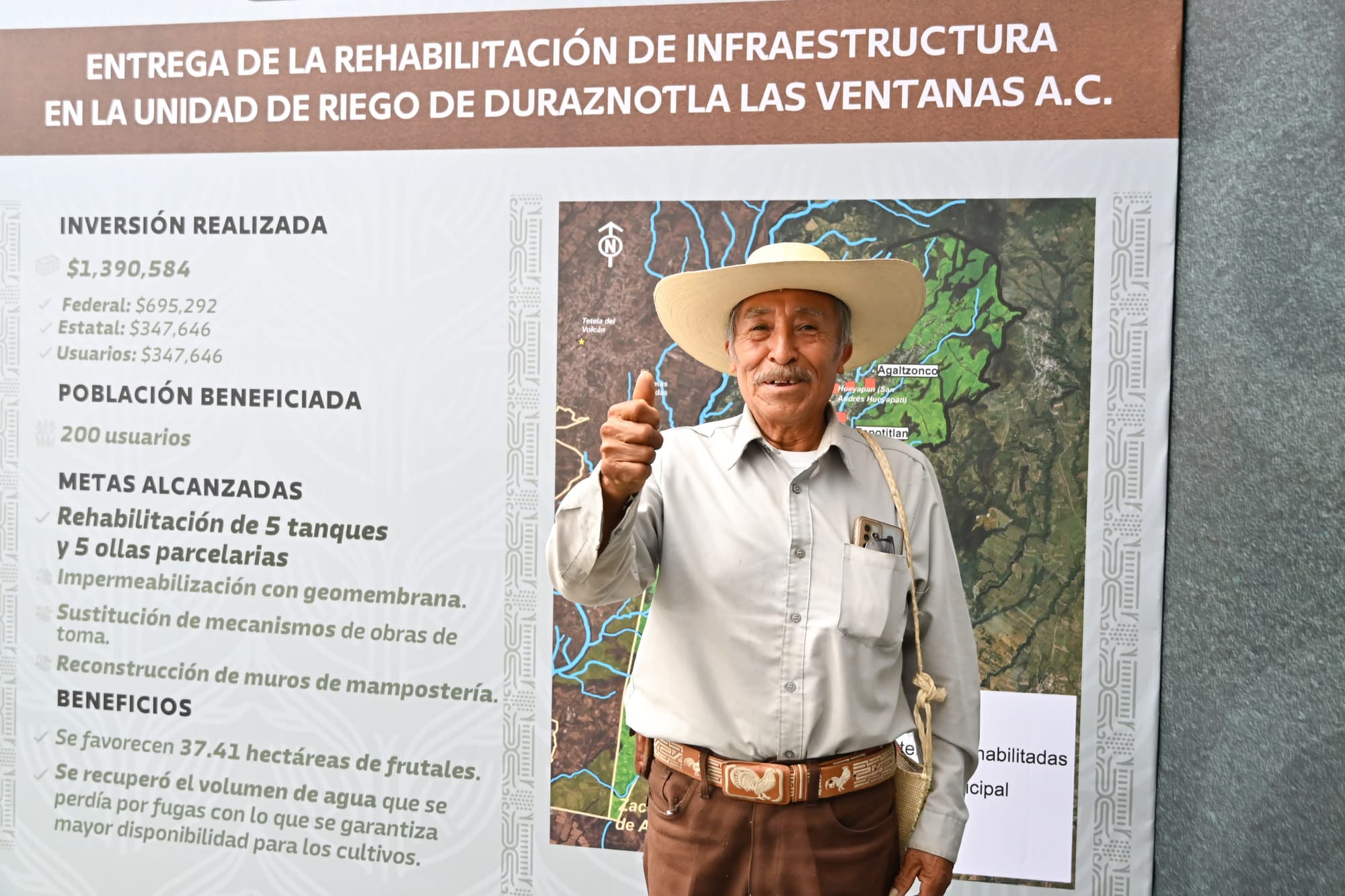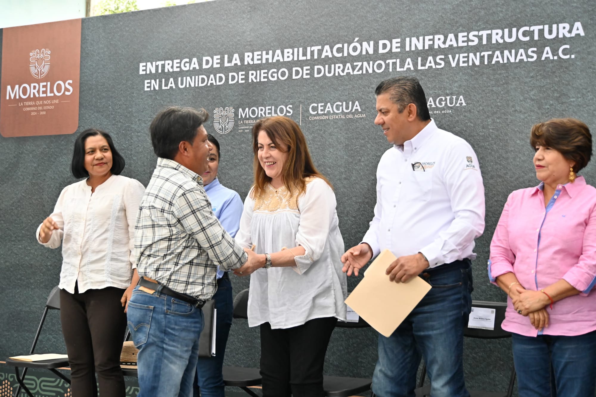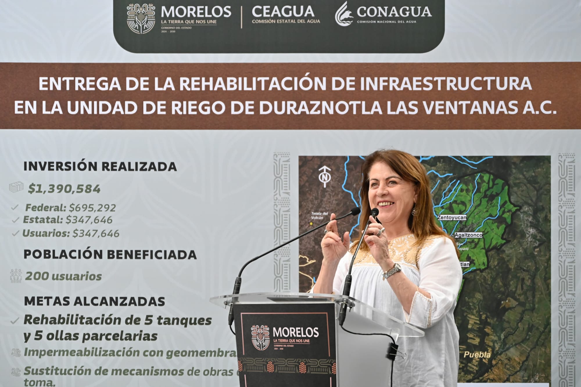Como parte del compromiso con las comunidades agrícolas de los Altos de Morelos, la gobernadora del estado, Margarita González Saravia, encabezó la entrega de obras de rehabilitación en la Unidad de Riego Duraznotla Las Ventanas A.C., ubicada en el municipio indígena de Hueyapan.