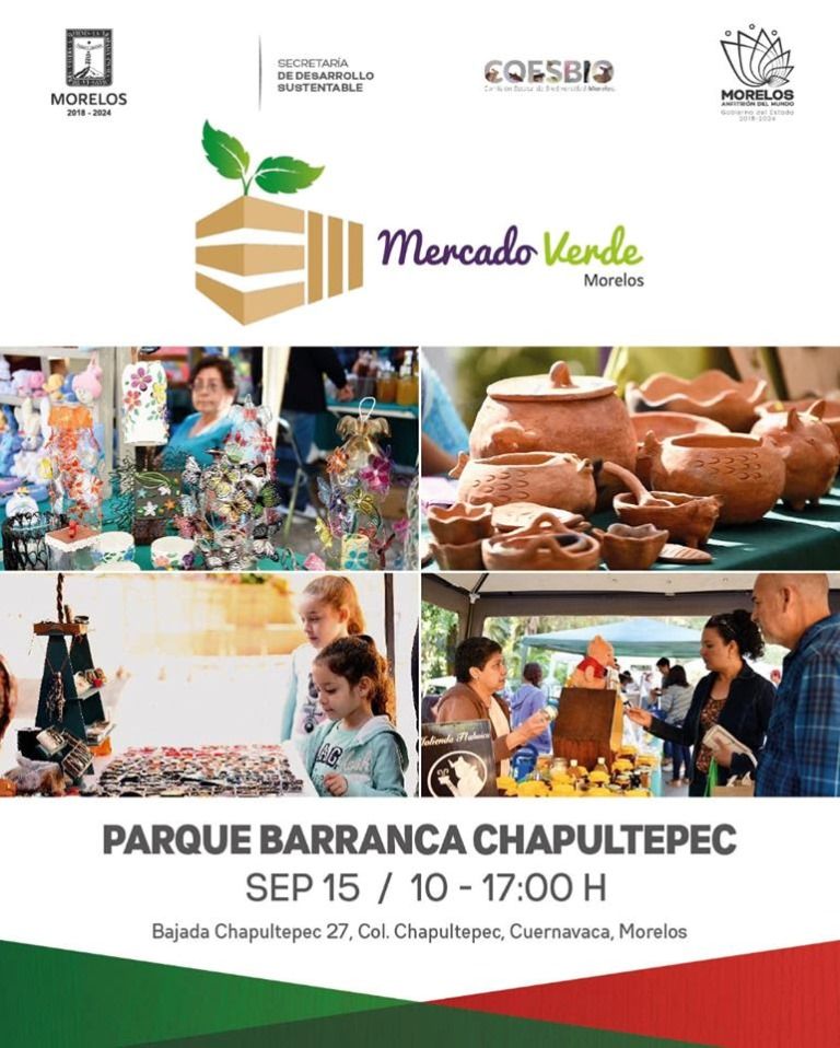 Para empezar bien las fiestas patrias, este domingo 15 de septiembre te recomendamos visitar el Mercado Verde que estará en el Parque Chapultepec de Cuernavaca a partir de las 8:00 horas.