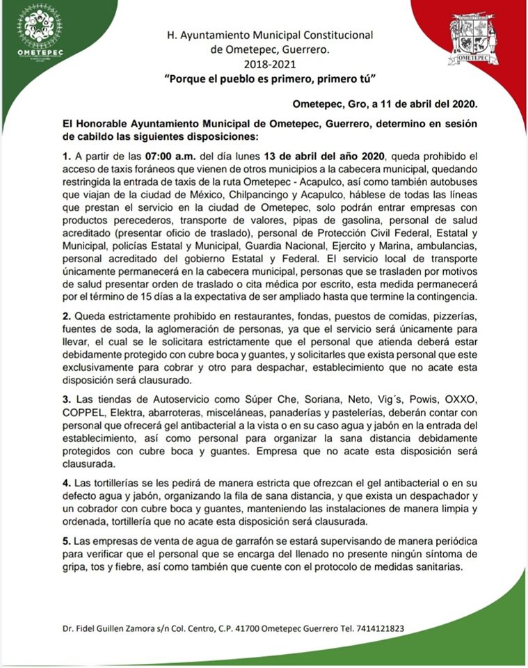 En el municipio de Ometepec, Guerrero, las autoridades municipales anunciaron que aquellas personas que salgan de sus casas después de 10 de la noche, podrían ser arrestados.
