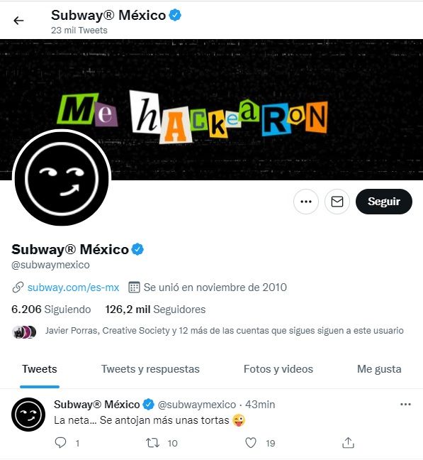 A temprana hora, la cuenta de Subway Mexico en Twitter sorprendió con un tweet en el que se leía: 1 like y hackeo la cuenta de Subway, para después continuar con una nueva imagen de portada, foto de perfil e incluso eliminación de información biográfica.