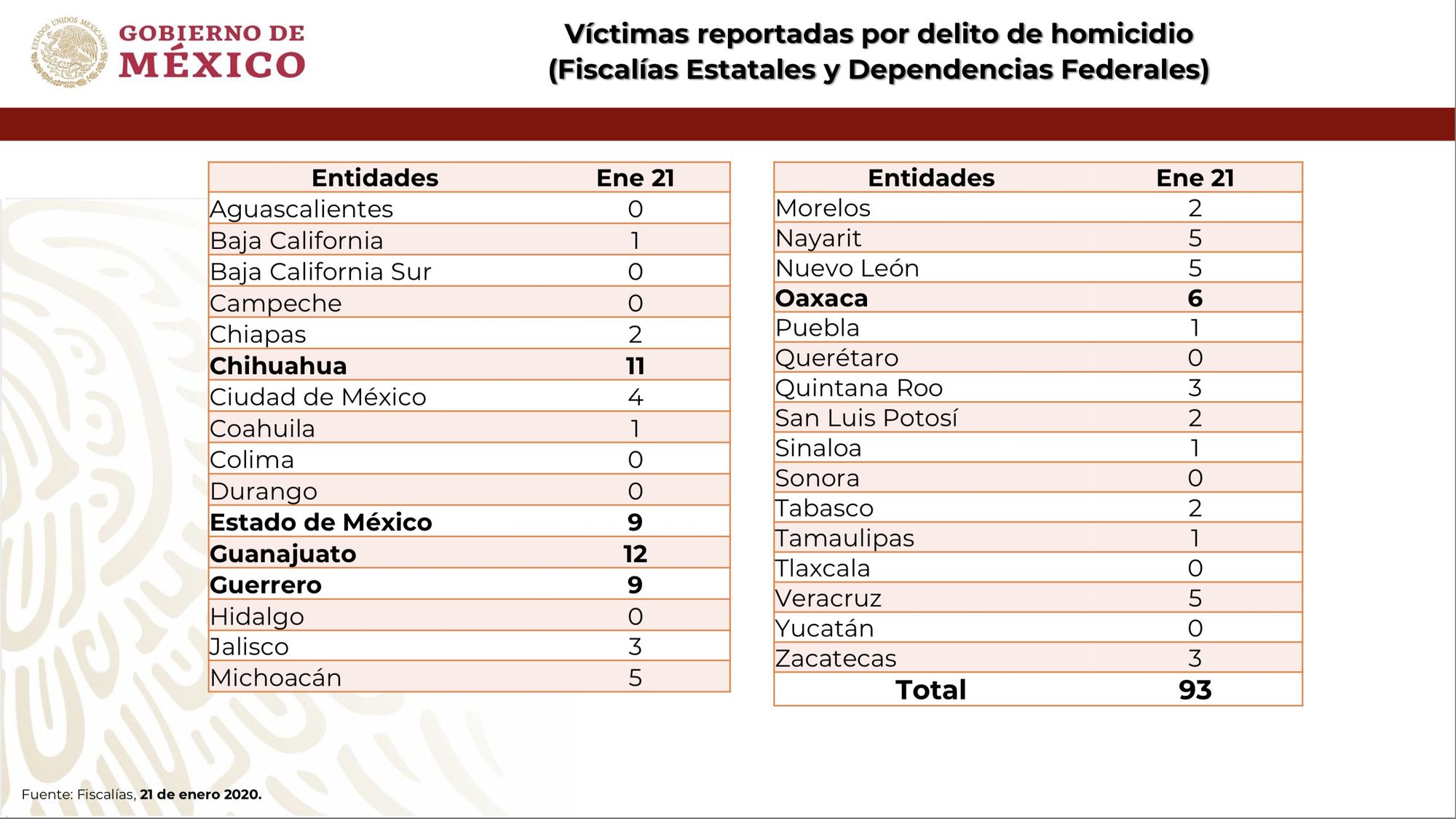 Dijo que Guanajuato es el estado con más casos, pues se han registrado hasta 30 asesinatos dolosos en un solo día, es decir un 15 % del total de homicidios en todo el país; es por ello que se incrementó el número de elementos de la Guardia Nacional en aquella entidad.