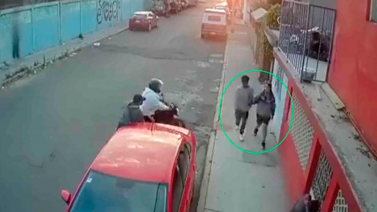 En redes sociales circula el vídeo en el que los dos adolescentes caminan por calles de la colonia Polígonos cuando son interceptados por unos motociclistas.