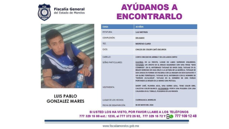 La persona que fue encontrada al fondo de la barranca de Amanalco, junto al circuito Adolfo López Mateos de Cuernavaca, frente a la gasolinera del DIF, era Luis Pablo Gonzales Mares, desaparecido el pasado 6 de mayo en la capital del estado.