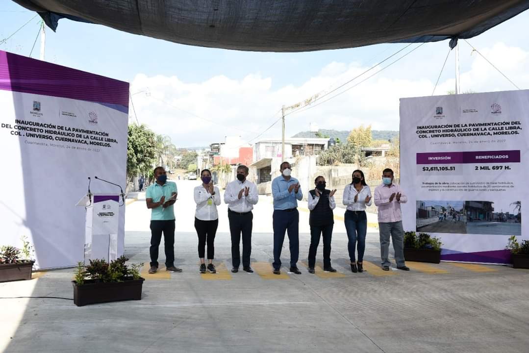 El gobernador Cuauhtémoc Blanco llevó a cabo una gira por el municipio de Cuernavaca para inaugurar obras de pavimentación de calles, en la colonia Universo, donde a partir de hoy se podrá transitar sin contratiempos en vehículo o caminado.