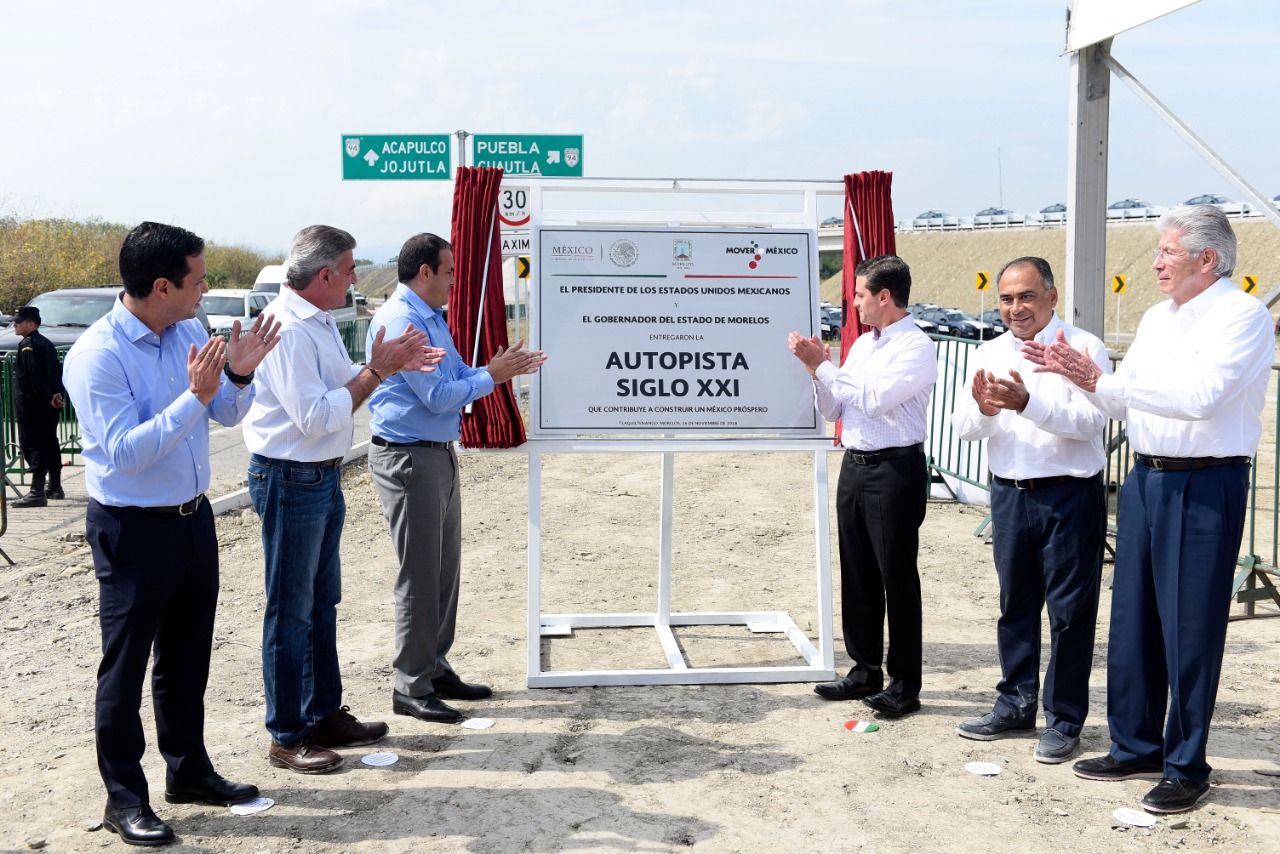 Al mediodía de este lunes 26 de noviembre, el presidente Enrique Peña Nieto junto al gobernador de Morelos, Cuauhtémoc Blanco Bravo, inauguraron la autopista Siglo XXI, la cual ambos mandatarios calificaron como una vialidad de suma importancia para el desarrollo económico de Morelos, Puebla, Veracruz y Guerrero.