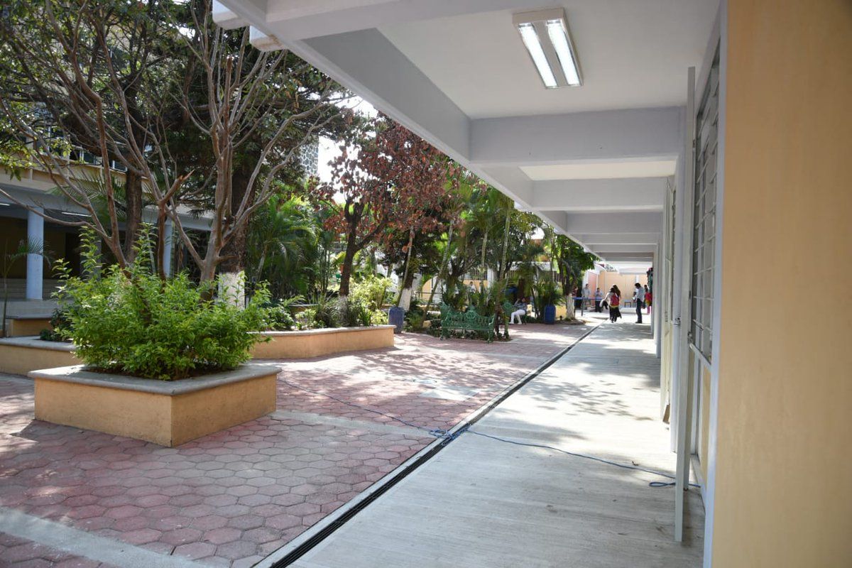 Además se llevó a cabo la reconstrucción del pórtico de acceso, plaza cívica, cisterna, Asta Bandera, barda perimetral e instalación de sistema eléctrico.