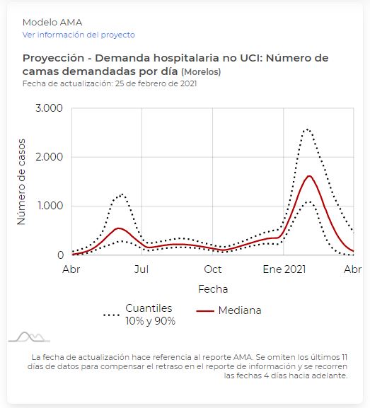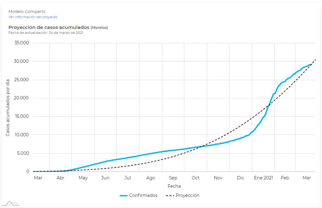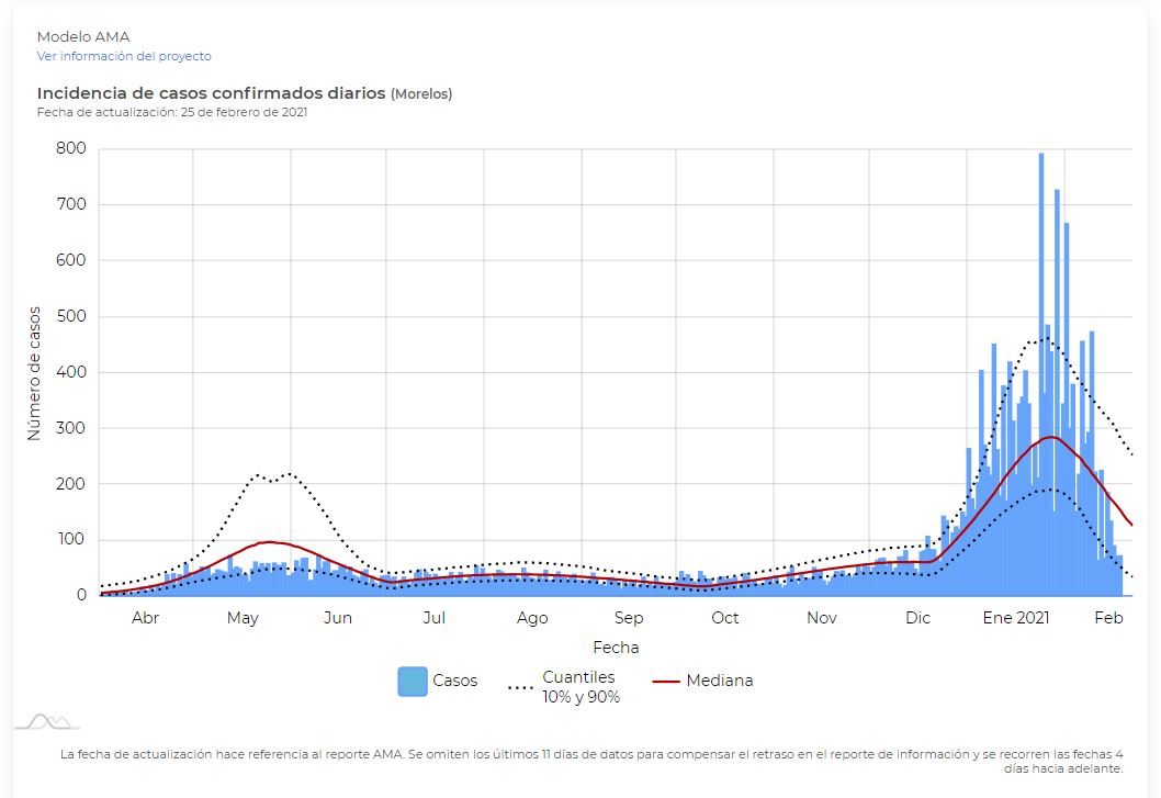 Sin embargo, en lo que va del año, la entidad morelense ha rebasado la proyección estimada de casos acumulados de COVID-19, y se espera que en15 días comience el repunte previsto tas las vacaciones de Semana Santa.