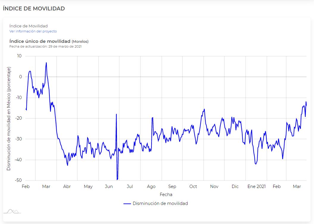 El 25 de marzo del 2020, previo al confinamiento oficial, el Conacyt reportó -12 % en la movilidad, con información obtenida a través de Facebook, Google y Twitter. Para el lunes de esta semana se registró el mismo puntaje, es decir, a un año de la pandemia el repunte de movilidad es considerable.