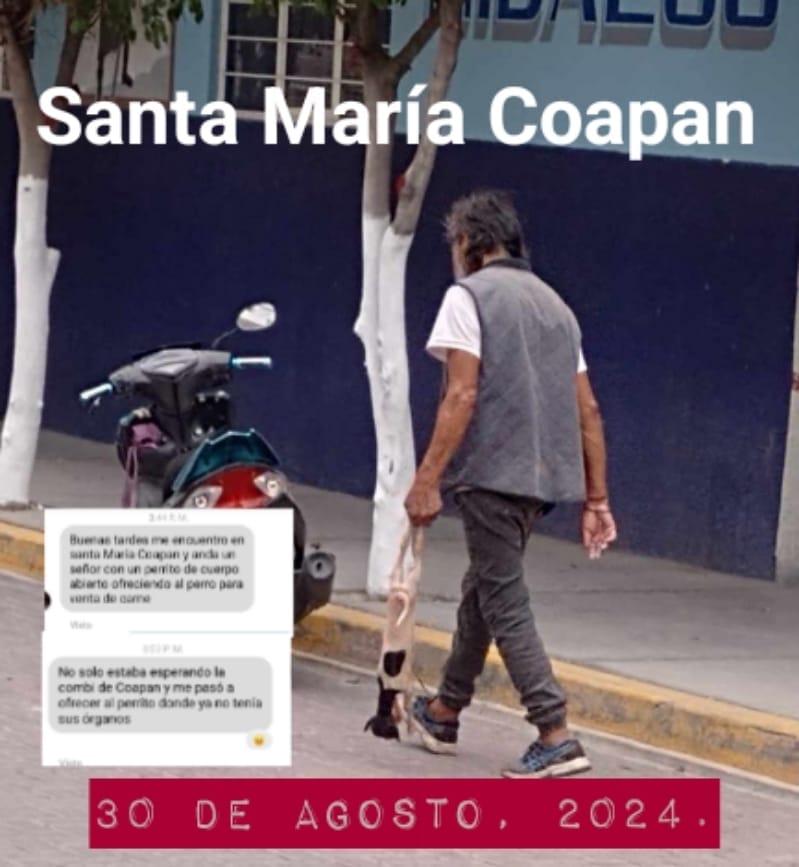 En un acto que ha generado gran indignación y preocupación, un hombre fue captado en la comunidad de Santa María Coapan, ubicada en Tehuacán, Puebla, ofreciendo carne de perro para consumo humano.