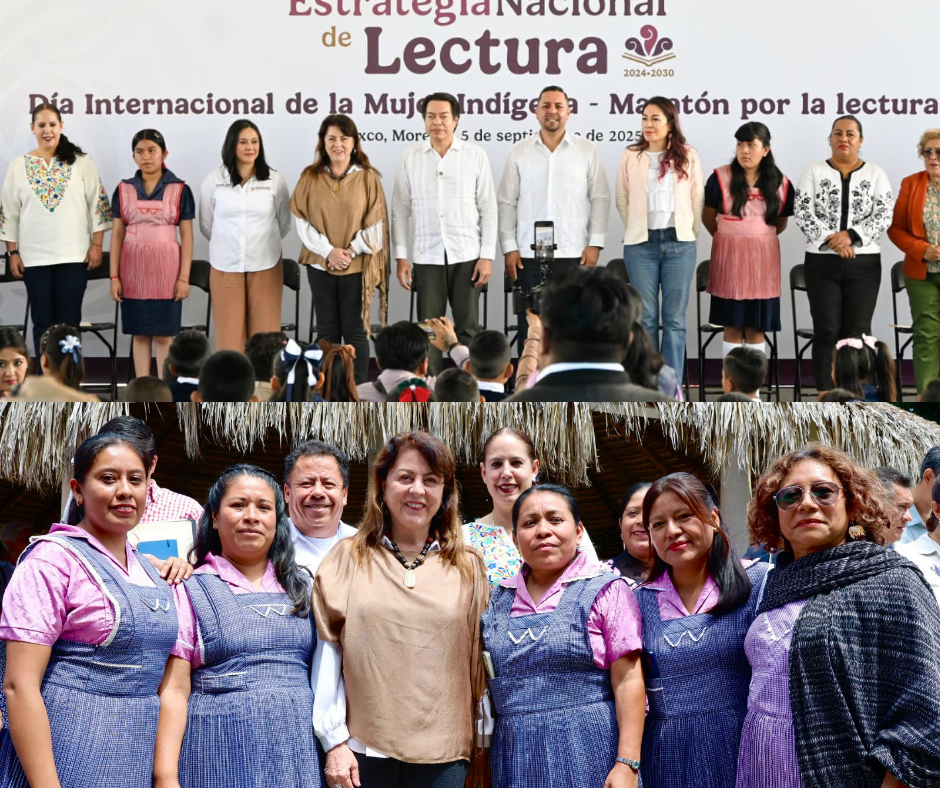 La mandataria, en compañía del secretario de Educación dieron inicio al Maratón por la Lectura "Mujeres Indígenas Voz y Raíz", dándole lectura al poema "Llueve", de la escritora Oaxaqueña Nadia López García. Se contó también con la presencia de Angélica Noemí Juárez Pérez, subsecretaria de Educación Básica del Gobierno de México, y Karla Aline Herrera Alonso, secretaria de Educación en Morelos.