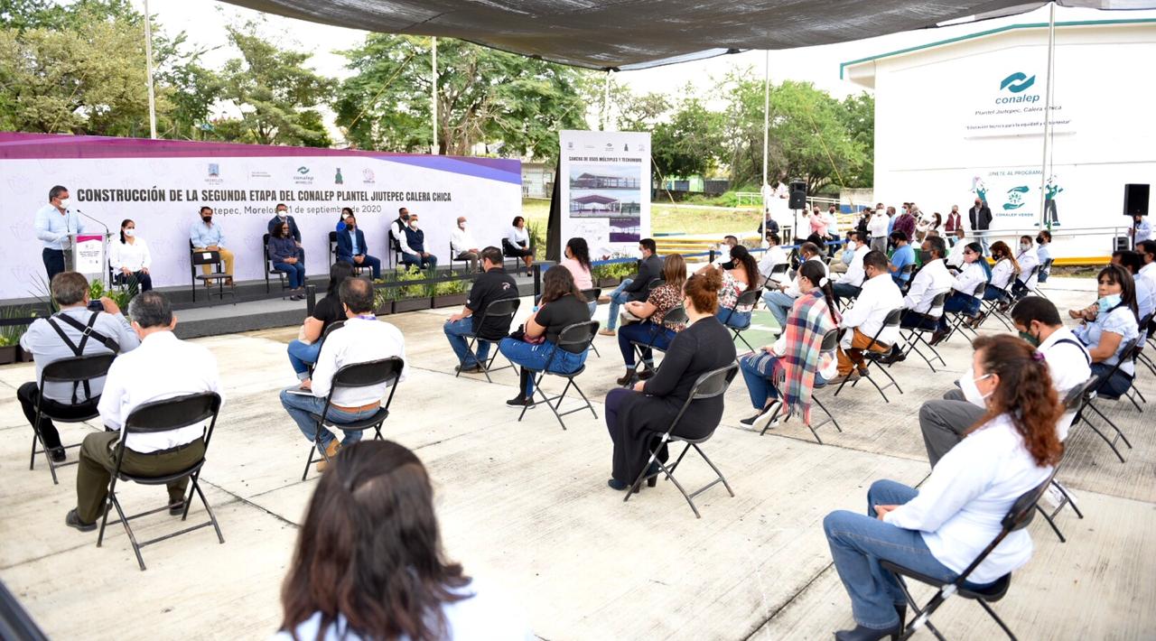 Este lunes el gobernador Cuauhtémoc Blanco Bravo, arrancó la segunda etapa de construcción del Conalep plante Jiutepec ubicado en la colonia Calera Chica, para que los alumnos cuenten con mejores instalaciones y puedan prepararse en un ambiente digno.