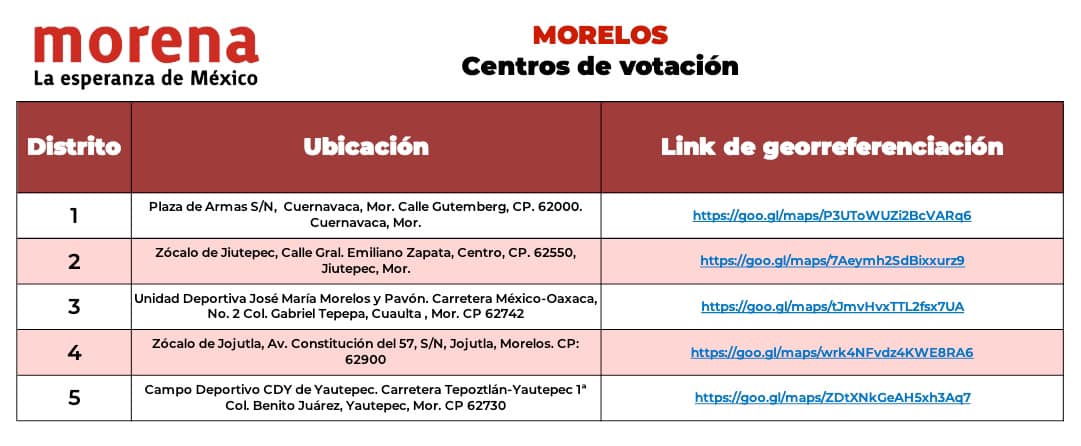 Las casillas para que la y los militantes de Morena acudan a emitir su voto, se encuentran en diversos lugares públicos.