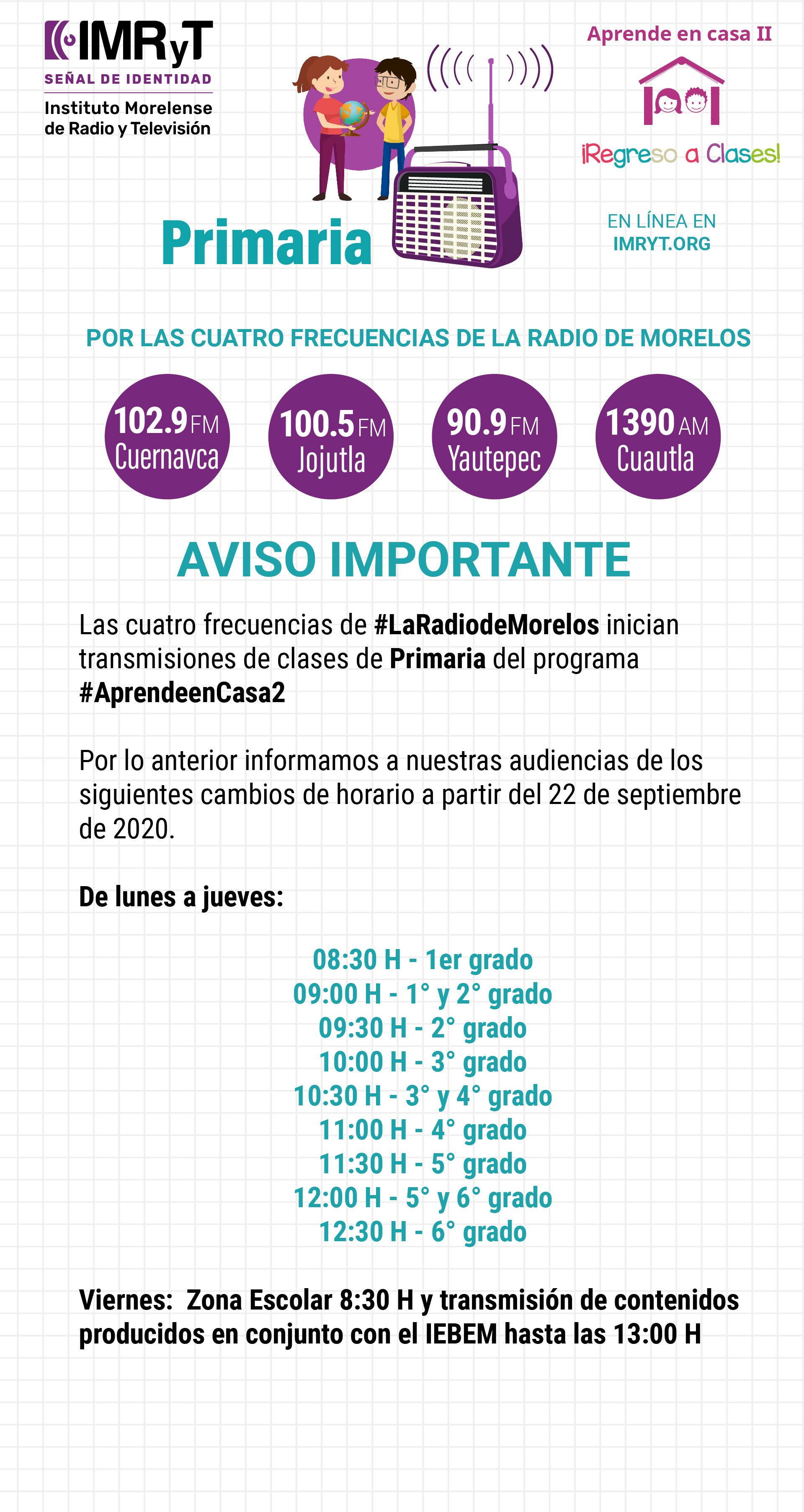 Para que ningún estudiante de primaria en Morelos se quede sin estudiar, ya comenzaron los contenidos educativos a través de la radio FM y AM.