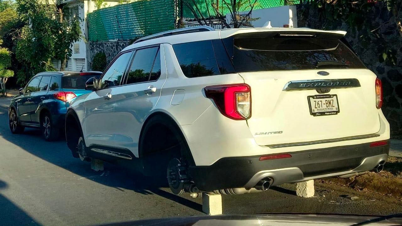 Y este lunes, una camioneta amaneció en tabiques sobre la misma vialidad, se trata de una Ford Limited color blanco a la que le robaron las llantas.