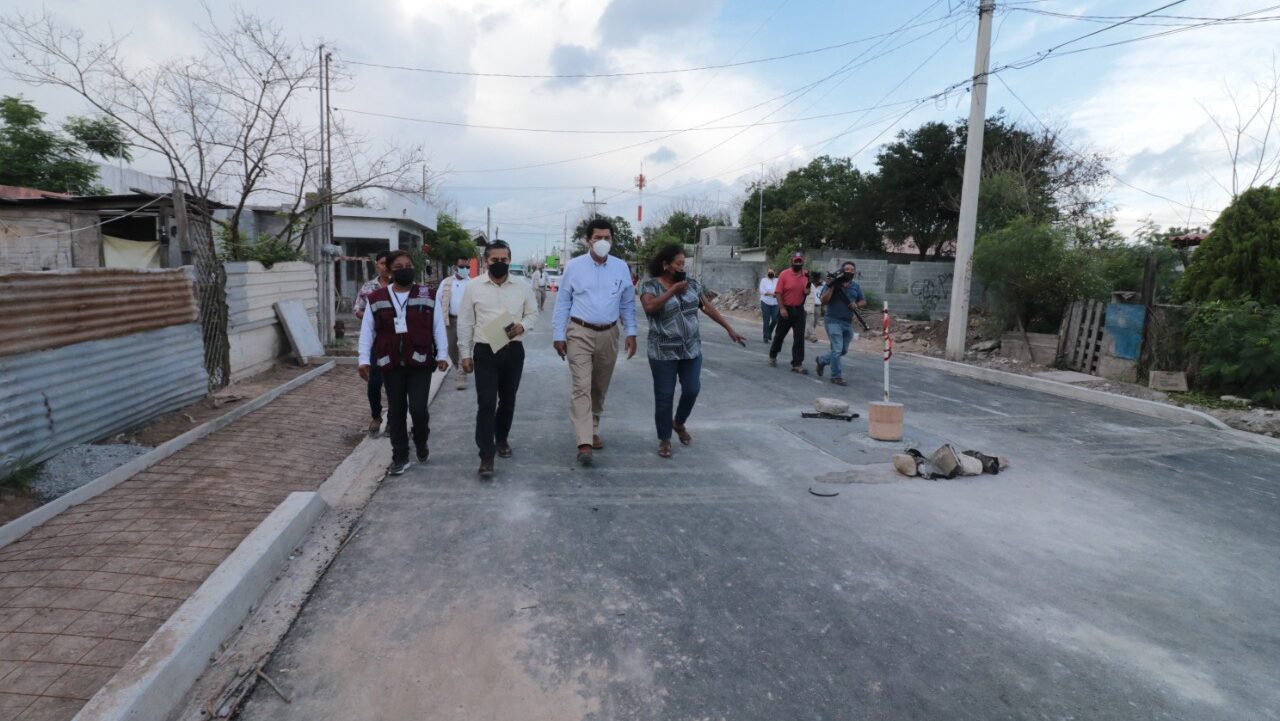 La primera calle visitada fue la de San Fernando, en la colonia Benito Juárez. El beneficio de esta calle, además de la pavimentación con concreto hidráulico fue la rehabilitación de red de drenaje sanitario y de agua potable, así como la construcción de guarniciones y banquetas. La inversión que se hizo fue de $885 mil pesos.