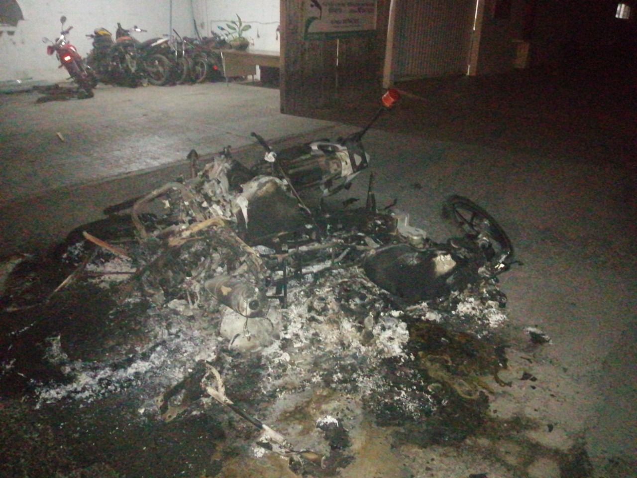 Posteriormente, se trasladaron un aproximado de 200 personas a las instalaciones del Auditorio Municipal “Amatzongo”, donde se encontraba una oficial de guardia, quien fue tomada como rehén. Además, provocaron destrozos y prendieron fuego a dos motopatrullas pertenecientes a la CES Morelos y una del municipio, así como a dos vehículos particulares.