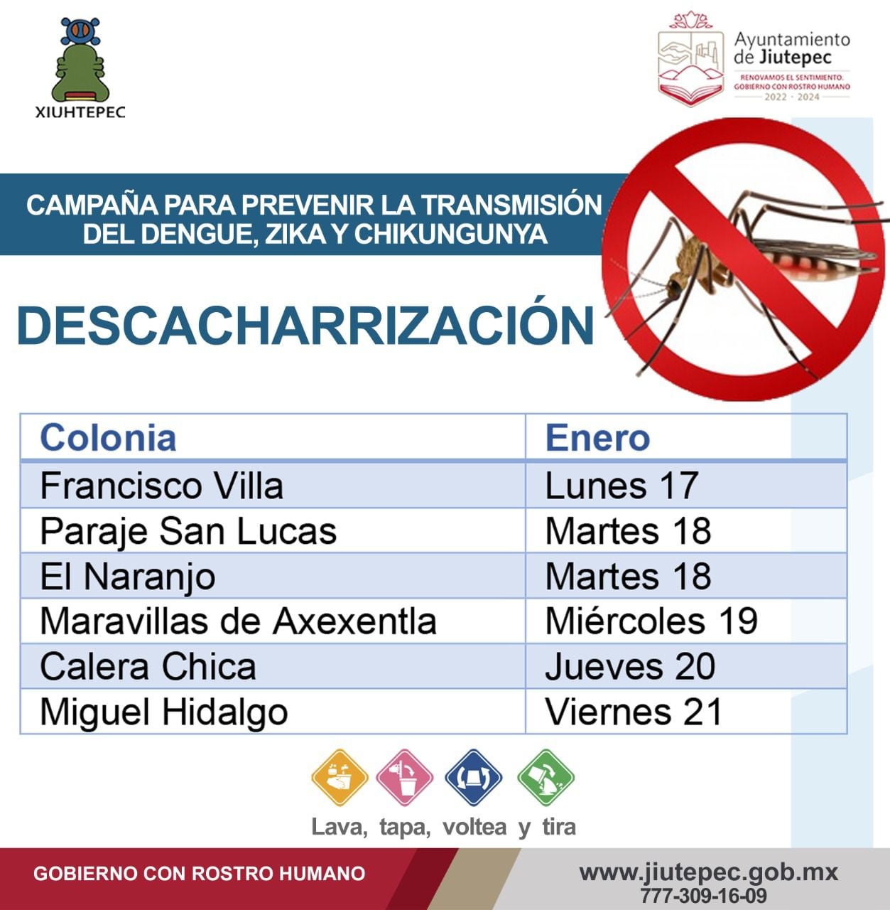 El Ayuntamiento de Jiutepec, en coordinación con la Dirección de Salud Pública del Gobierno con Rostro Humano, con el fin de prevenir enfermedades transmitidas por el mosco del dengue, zika y chikungunya, dieron inicio con las jornadas de descacharrización.