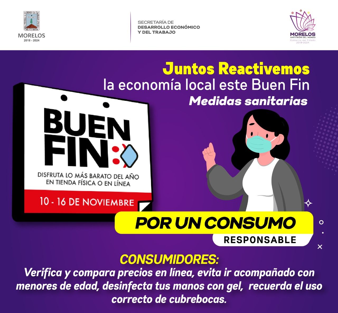 Como parte de las acciones del Gobierno estatal para incentivar la reactivación económica, la Secretaría de Desarrollo Económico y del Trabajo ( SDEyT) anuncia que más de cinco mil empresas de Morelos participarán este año en el Buen Fin, con el objetivo de aminorar las afectaciones por la pandemia de COVID-19.