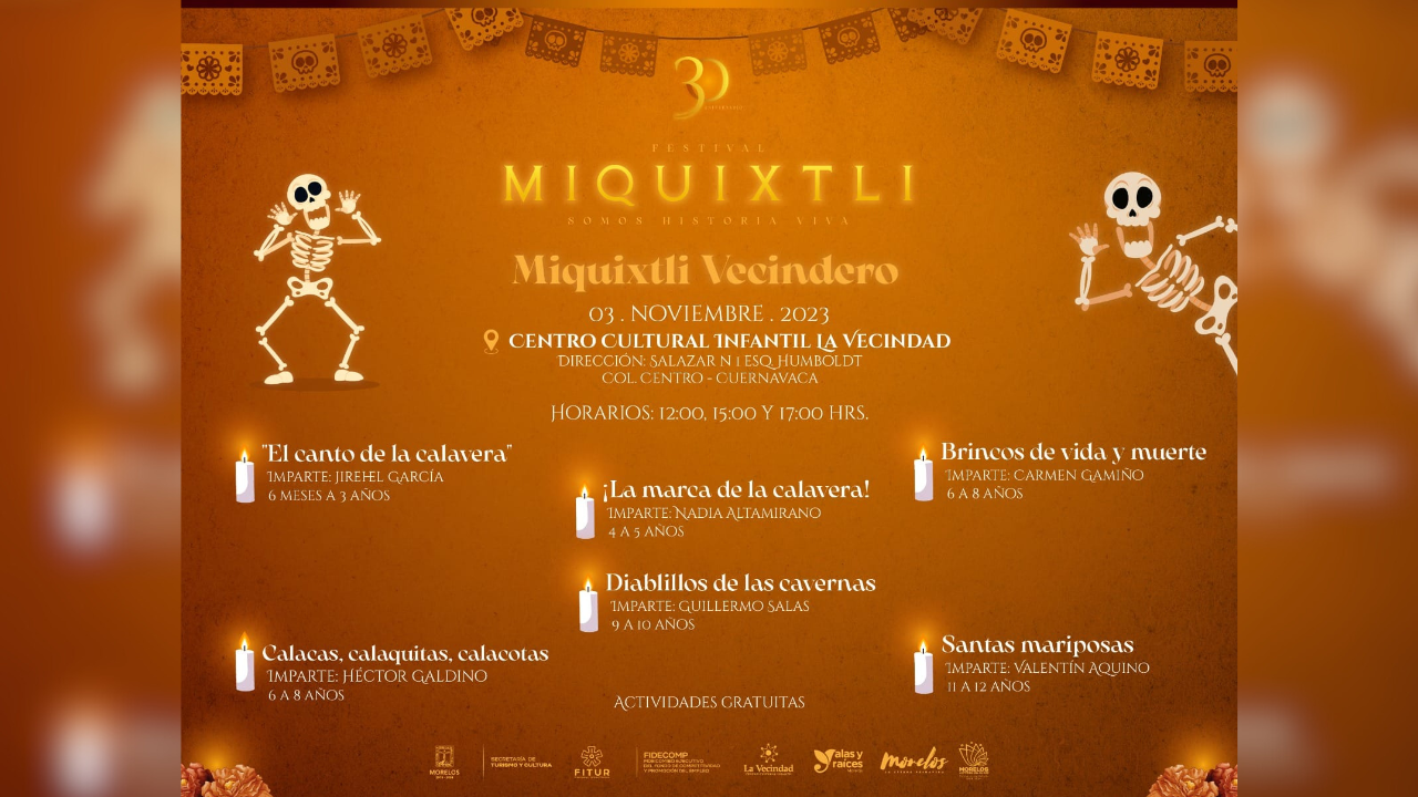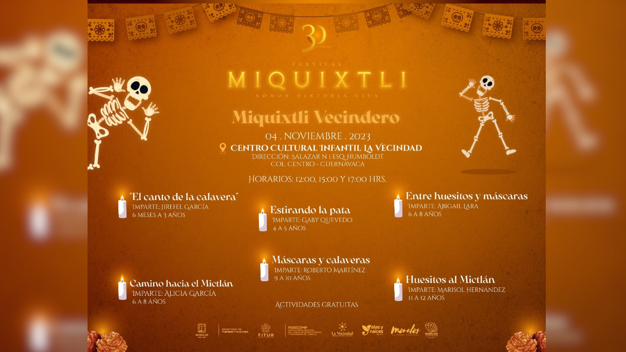 Al respecto, Julieta Goldzweig Cornejo, secretaria de Turismo y Cultura, mencionó que este año se instala el “Miquixtli Infantil” en este emblemático espacio con actividades específicas para que las y los menores de edad tengan un acercamiento lúdico a las tradiciones, en el marco de este Día de Muertos.