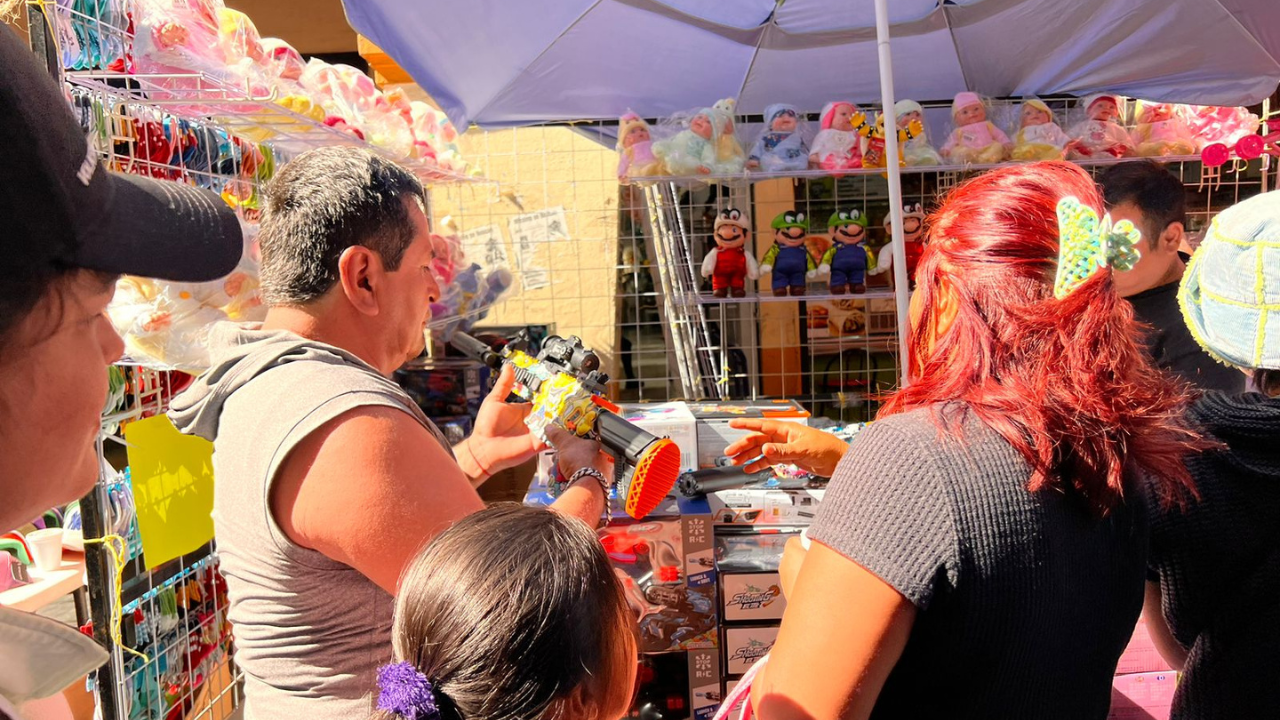 Dentro de este tianguis, hay al menos 15 puestos que están ofertando estos productos, a pesar de que líderes comerciales aseguraron que no ofrecerían ese tipo de juguetes.