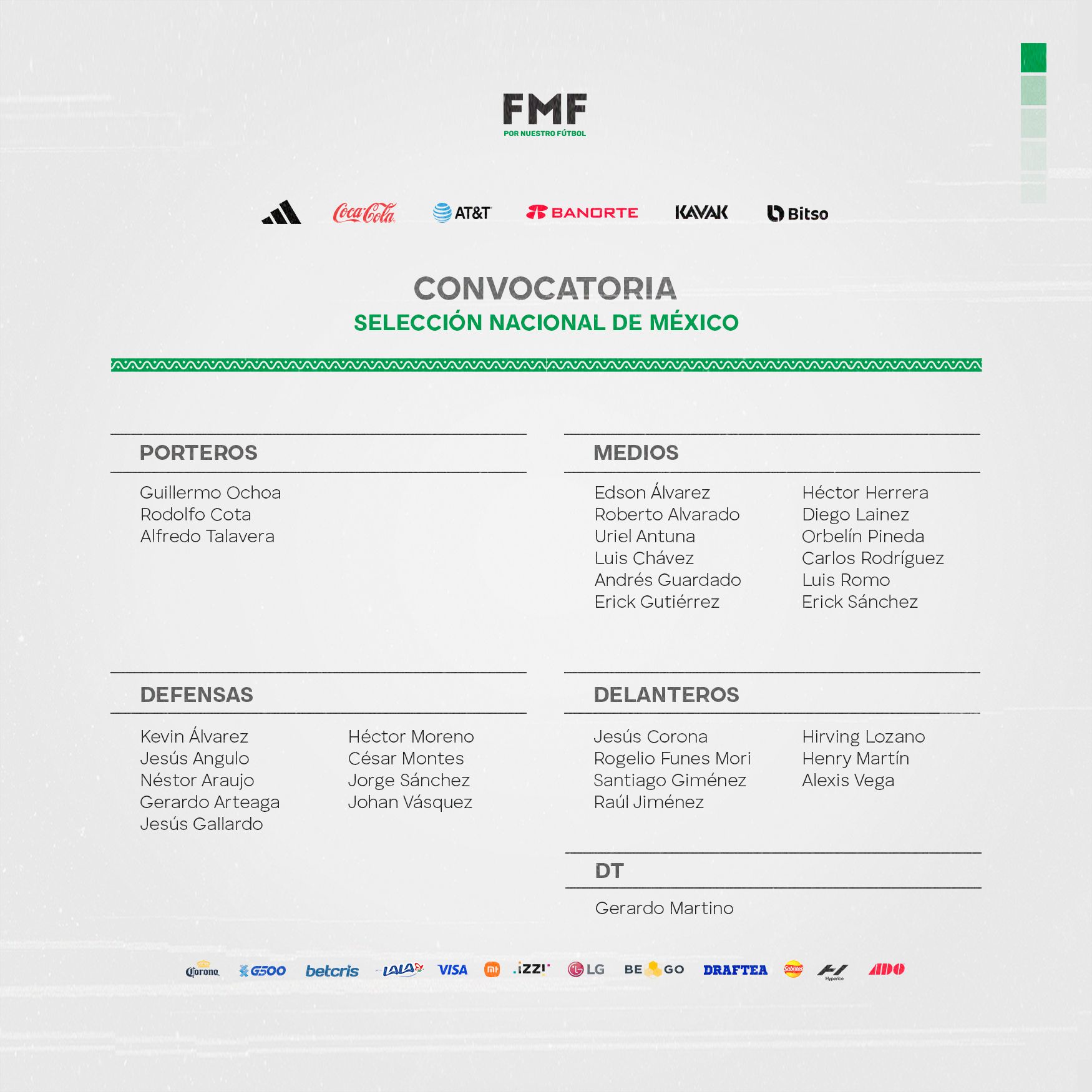 La Federación Mexicana de Fútbol, ha dado a conocer la lista de los 31 jugadores que integrarán el equipo de fútbol de la selección mexicana.