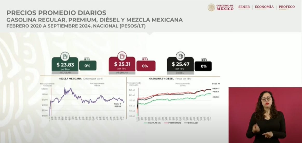Gasolina regular: 23.83 pesos por litro