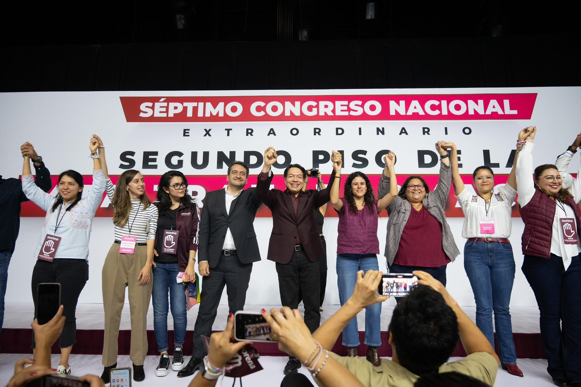 “Estoy contento con la llegada de Luisa María a la presidencia de Morena y los felicito a todos los delegados de Morena, a los que participaron en el Congreso, en el Consejo y a los nuevos dirigentes de Morena”, comentó.