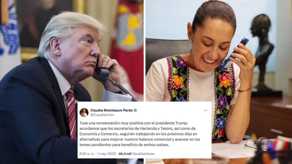 "Tuve una conversación muy positiva con el presidente Trump; acordamos que los secretarios de Hacienda y Tesoro, así como de Economía y Comercio, seguirán trabajando en los próximos días en alternativas para mejorar nuestro balance comercial y avanzar en los temas pendientes para beneficio de ambos países", explicó Sheinbaum.