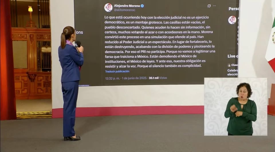 "Por el PRIAN votaron menos en 2024 que los que votaron en la elección judicial de ayer", señaló la presidenta.
