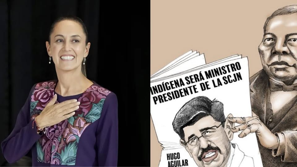 Este martes, la presidenta Claudia Sheinbaum destacó un cartón del monero Rapé, en el que se ilustra que Aguilar podría convertirse en el próximo presidente indígena de la SCJN, algo que no ocurría desde Benito Juárez.