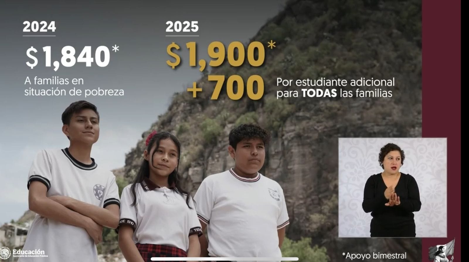Cada estudiante de primaria y secundaria recibirá $1,900 cada dos meses; y adicional a esto, la familia de ese estudiante recibirá $700 extra por cada hija o hijo que tengan.