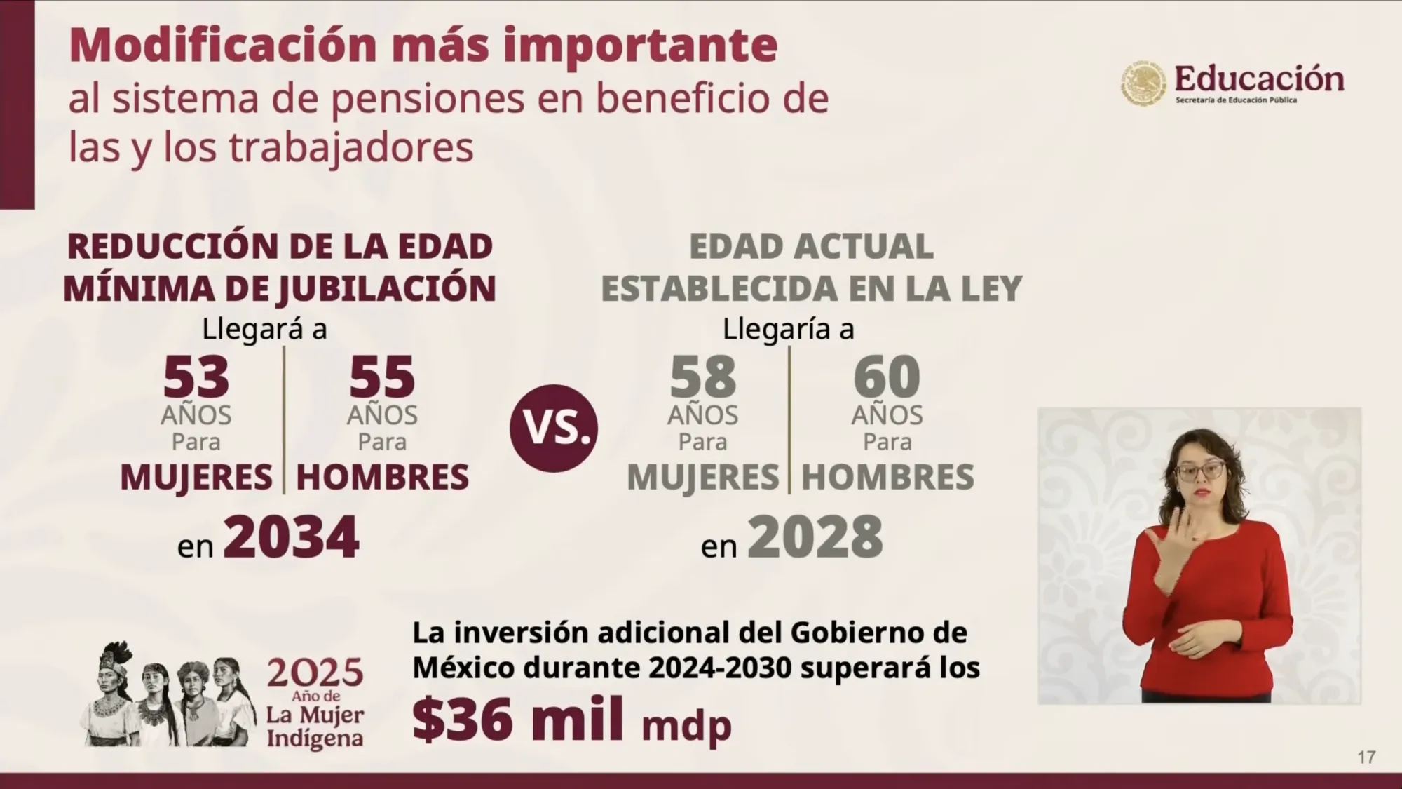 El segundo decreto es para acceder a una pensión jubilatoria justa y digna, congelando la edad de jubilación para que en 2034 quede en 53 años para las mujeres y 55 años para hombres.
