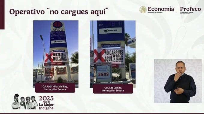 Iván Escalante, titular de la Procuraduría Federal del Consumidor, menciona durante la 'Mañanera del Pueblo' que siguen colocando lonas con taches en gasolineras que hacen cobros excesivos con los precios de la gasolina.