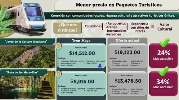 La administración del Tren Maya dio a conocer que ofrecerá 2 paquetes turísticos accesibles que incluirán viajes en sus unidades, vuelos, hospedaje y recorridos por zonas arqueológicas, también por plazas importantes y playas del sureste de México, como una agencia de viajes.