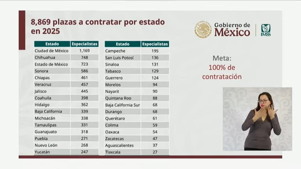 Durante la Mañanera del Pueblo se anunció la contratación de 8,869 médicas y médicos especialistas en los hospitales IMSS de todo el territorio mexicano.
